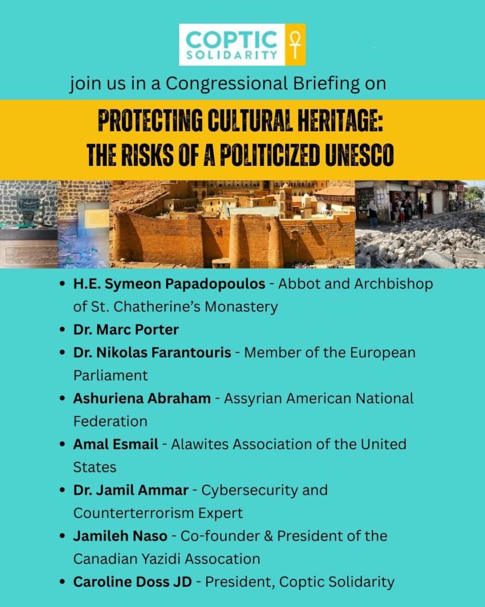 Η ενημέρωση του Κογκρέσου περιελάμβανε επίσης παρουσιάσεις από ηγέτες των Ασσυρίων, των Αλαουιτών, των Δρούζων και των Γιαζίντι, οι οποίοι περιέγραψαν την καταστροφή της πολιτιστικής κληρονομιάς, των θρησκευτικών ελευθεριών και των δικαιωμάτων των μειονοτήτων στην Αίγυπτο, τη Συρία και το Ιράκ, καθώς και στην Τουρκία και το Αζερμπαϊτζάν.