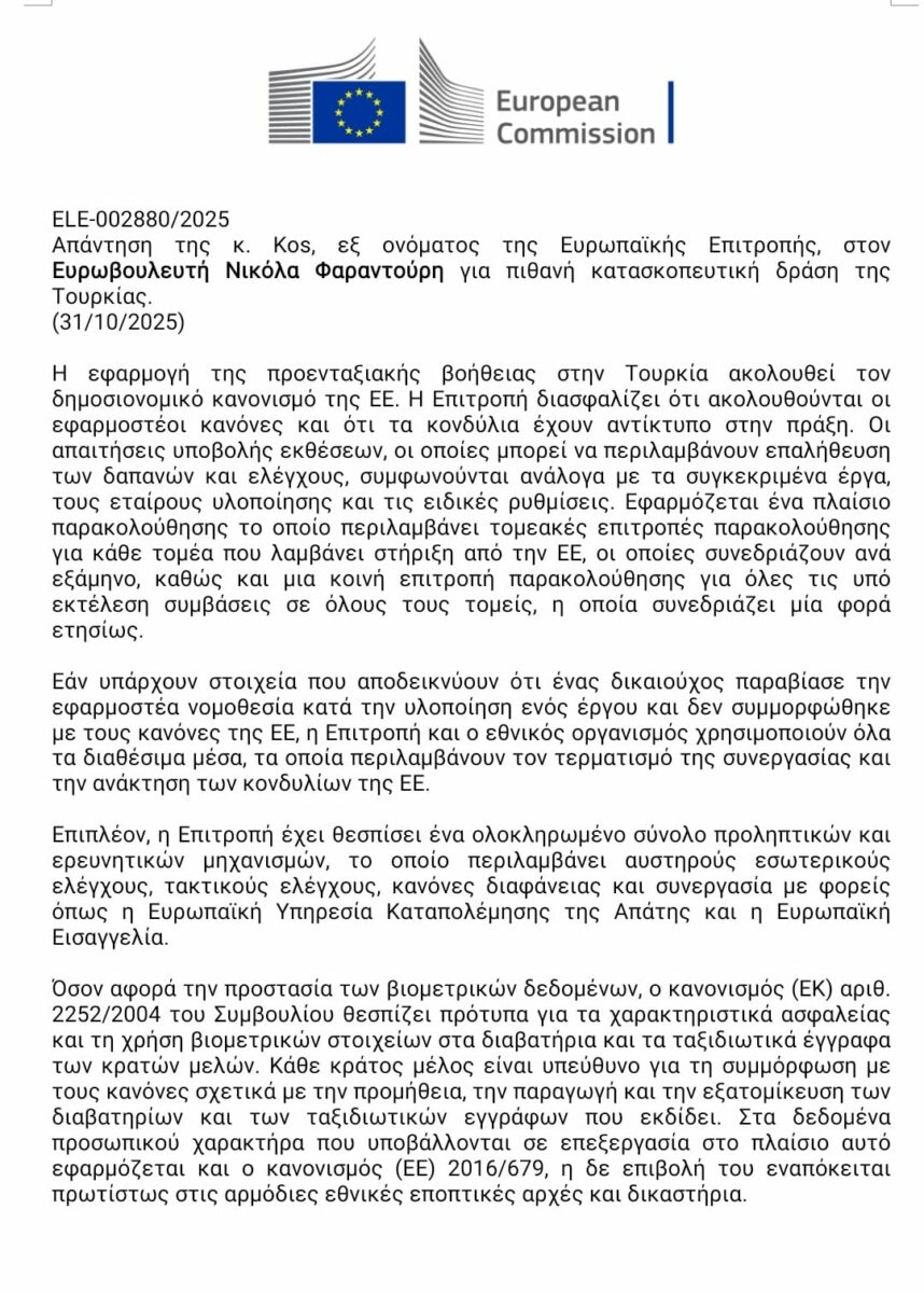 Η απάντηση της Επιτροπής στην ερώτηση Φαραντούρη
