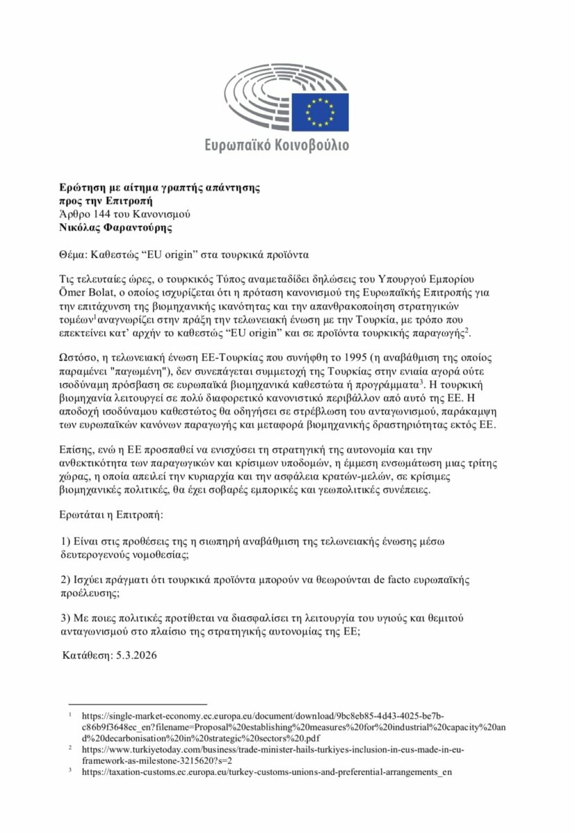 Μπλόκο Φαραντούρη σε Τουρκία για το “Made in Europe”